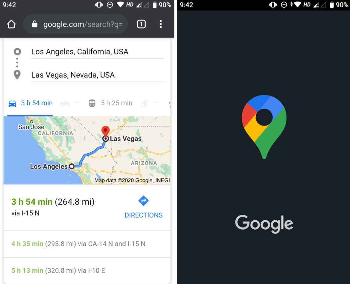 With app deep linking, Google redirects users searching for routes to Google Maps.