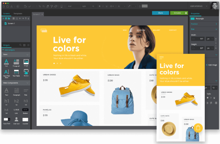 Justinmind is a standalone tool available both for macOS and Windows. The widgets are straightforward, letting you add and modify texts, paragraphs, images, buttons, tables, links and icons. You start from scratch and depending on what you want to do, you can create wireframes and interactive prototypes.