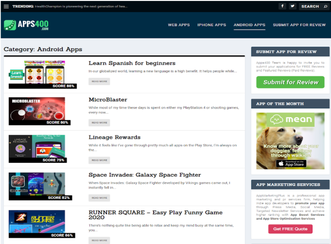 Apps400.com offers both free and paid reviews for mobile and web apps.