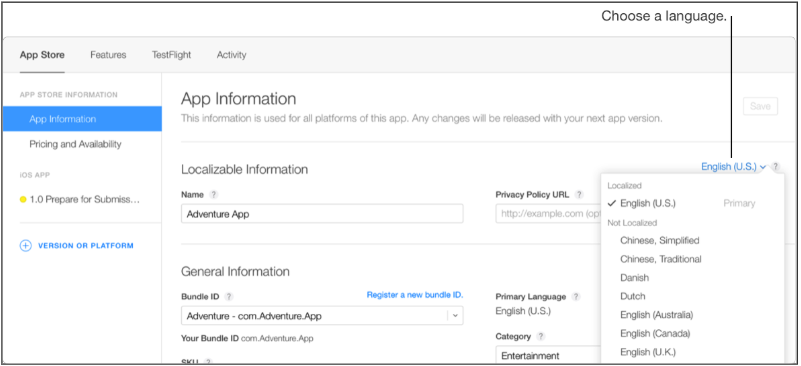 Performing localization for Apple App Store. Image Credit: ibabbleon.com