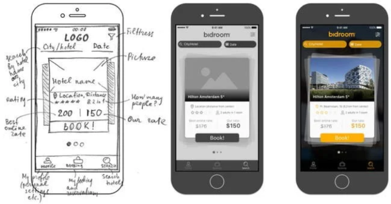 Prototyping means converting the wireframe into an actual design with the required structure, flow, colors, buttons and pictures, and getting a better idea of how the final product would look like.