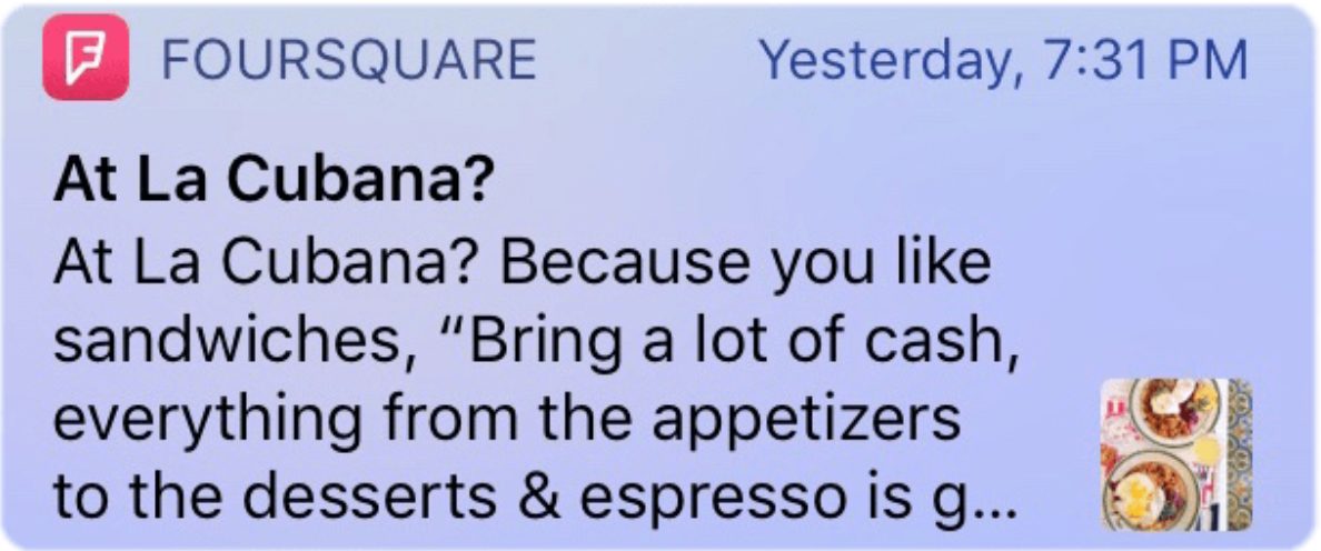 In this case, the ice cream shop is running a location-based ad that targets the right customer (an ice cream lover) at the right time (most people have their lunch away from home). And an ice cream lover will most likely find the offer to be too good to resist.
