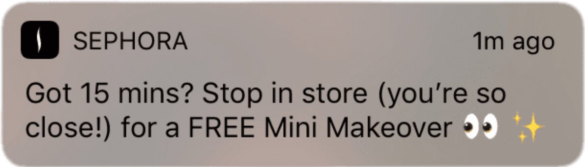 Sephora sends marketing messages to customers who are within a specific radius of the store. As their location-based advertising campaigns are incentivized, customers are more likely to visit.
