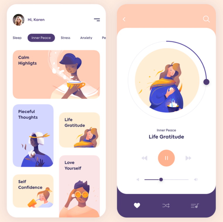 Another mobile UX trends in 2020 will be the use of artistic illustrations instead of pictures. Designers are ditching 3D illustrations for flat or semi-flat illustrations with eye-catching palettes as they seem to gel well with minimalistic UI designs.