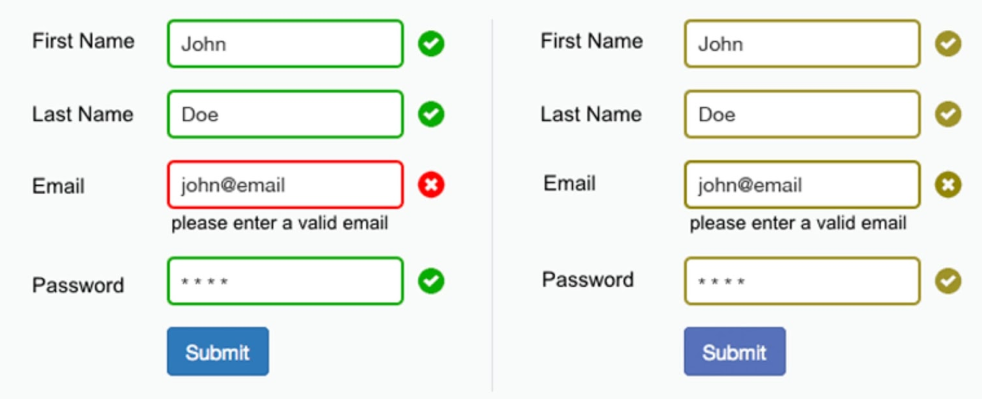 Using messages instead of just colours will better communicate errors to colour blind users. Image Credit: smashingmagazine.com