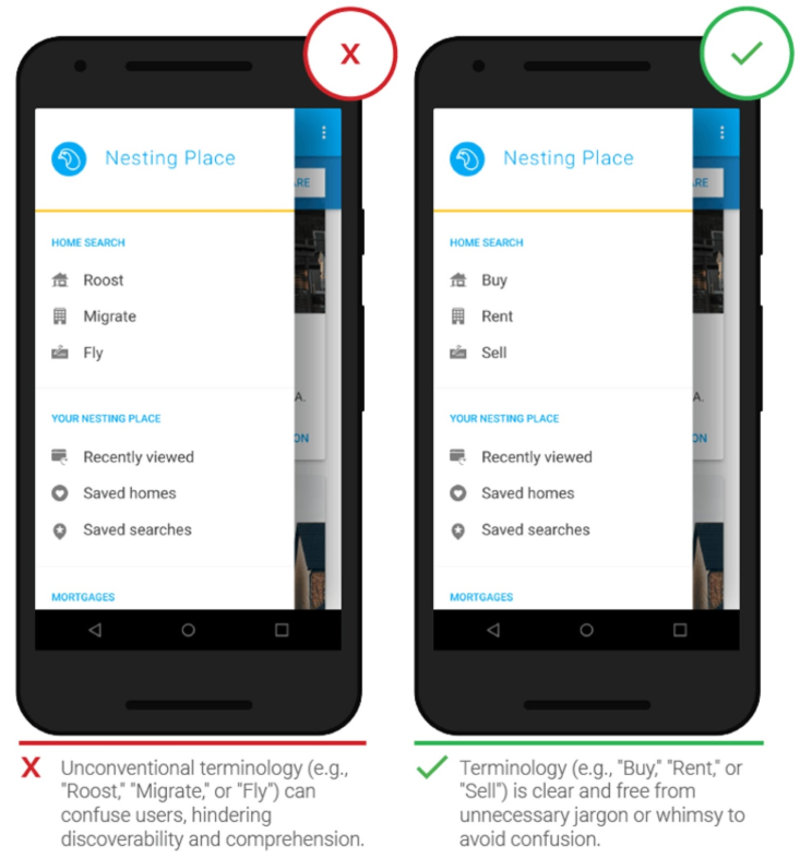Easily understandable UI elements must be a top priority for designers. Use certain phrases only if your target audience can easily comprehend them.