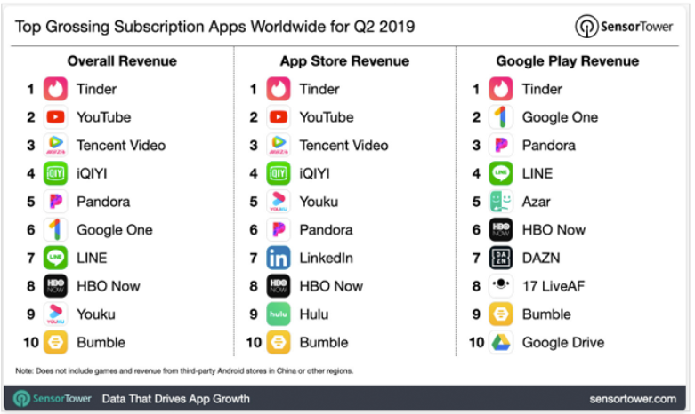 App Subscription Data (Q2, 2019) Source: Sensor Tower