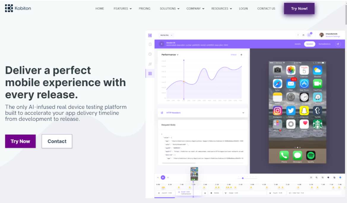 Kobiton is a cloud-based mobile testing software application that lets you run manual and automated tests on real devices. It’s built on top of the Appium framework and supports GPS simulations, multi-touch gestures, screen orientation, and device connection management.